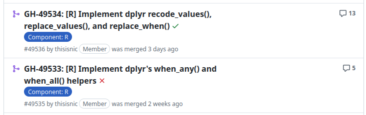 An “Arrow R dev skill” I set up which provides guidance for working with the Arrow R codebase and Arrow repository in general
