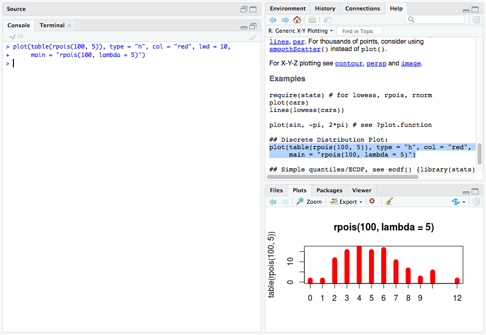 In R function documentation, runnable code is often included, but in most cases needs to be manually run by the reader to see the output. I’m torn as to whether this is good or not. On the one hand, it encourages you to run the code and get a more tangible feel for what it does and saves valuable space in the Viewer window in RStudio. On the other hand, it adds an extra manual step to your workflow and lengthens the time until that precious “quick win” of enlightenment when exploring a new function.
